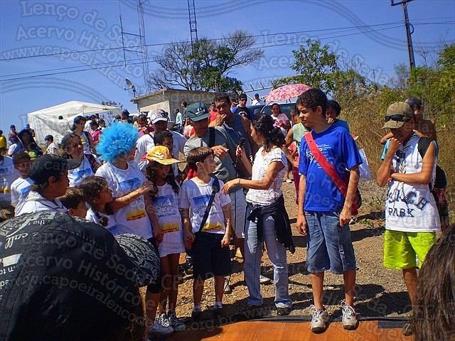 Caminhada Ecológica ao Pico do Ana Moura promovida pela Associação de Capoeira Lenço de Seda/CECAB, Todos ao Pico. Verdejando ao Ana Moura. Na foto Mestre Reginaldo –Véio conduzindo uma roda de Capoeira Angola no cume do pico.