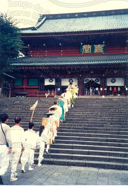 Viagem do Mestre Reginaldo para o Japão, para aperfeiçoamento da prática de acupuntura e levar o conhecimento da arte da Capoeira.Na foto Ritual em Templo Xintoísta em Tókio no Japão .